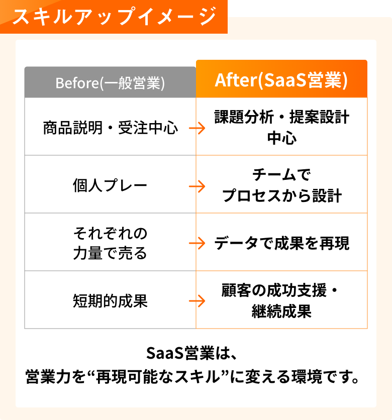 SaaS営業は、営業スキル × 論理的思考 × 顧客支援力を磨ける環境。
