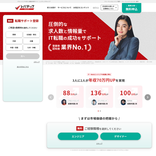 圧倒的な求人数と情報量でIT転職の成功をサポート!3人に2人が転職による年収アップを実現