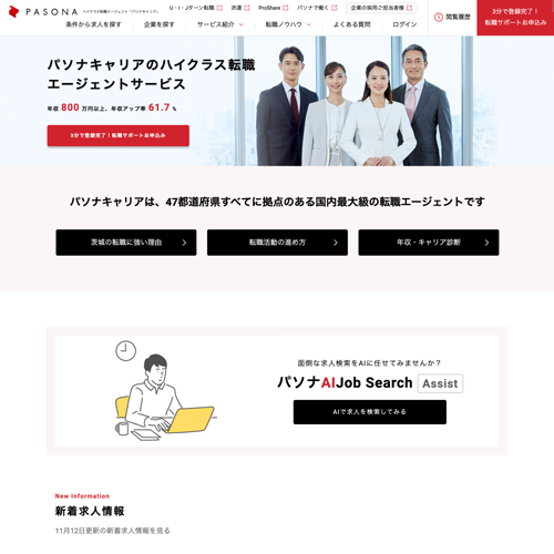国内最大の転職エージェントサービス!約半数が「年収800万円以上」のハイクラス求人